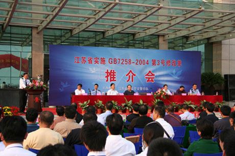 为贯彻实施国家标准《机动车运行安全技术条件》(GB 7258-2004)第3号修改单,深入推进全省货车车身反光标识粘贴和侧后部防护装置安装工作,省公安厅在我公司召开了实施货车车身反光标识推介会。会议内容包括: