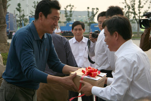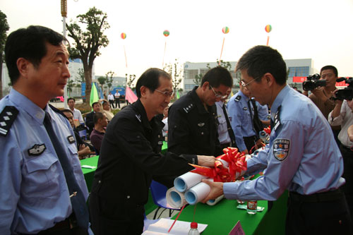 4、举行了向部分货运企业赠送车身反光标识仪式。