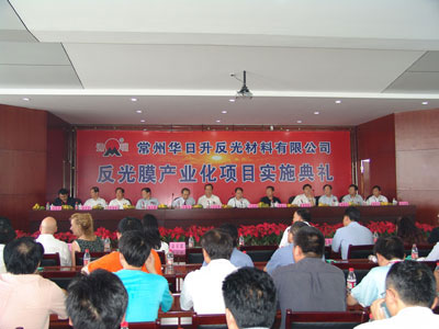 7月26日,反光材料技术发展研讨会暨常州华日升反光材料有限公司反光材料产业化项目实施庆典,在华日升新厂区盛大举行,交通部、公安部、民政部相关专家领导,各省市地区的公共交通行政、企业负责人,各大标牌、车牌厂,常州市、武进区、邹区镇党政领导班子,总计700余人,出席了盛大的典礼。