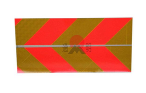 1.由红色荧光材料和黄色回复反射材料构成,安装在挂车或半挂车上的尾部标志板。