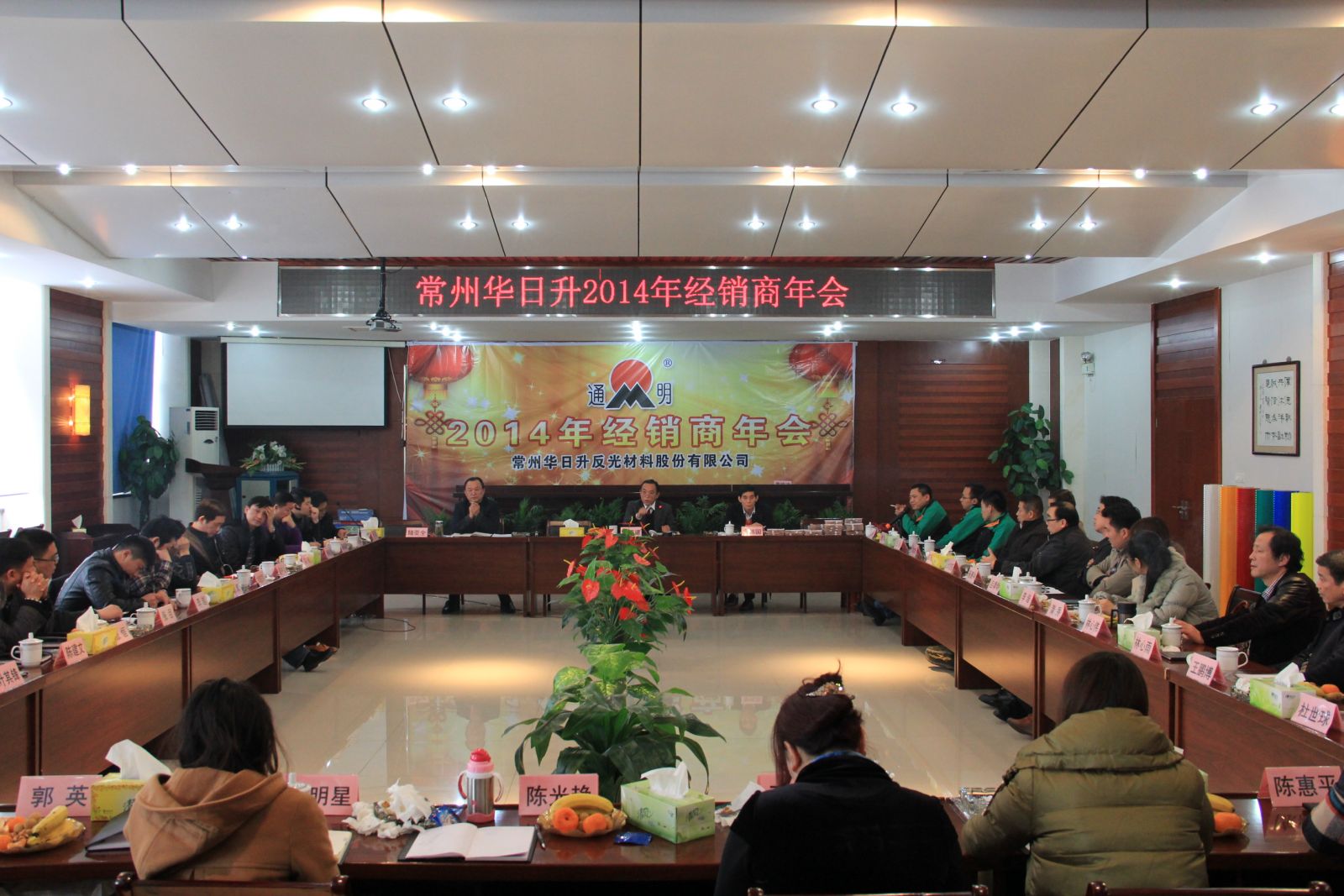 以“感谢·支持·共赢”为主题的常州华日升2014年经销商年会于3月1日在公司中会议室召开,公司董事长陆亚建、副总经理金伟国及销售总监陆亚全出席会议。来自全国各地的经销商共聚一堂,畅叙友谊,共商合作。